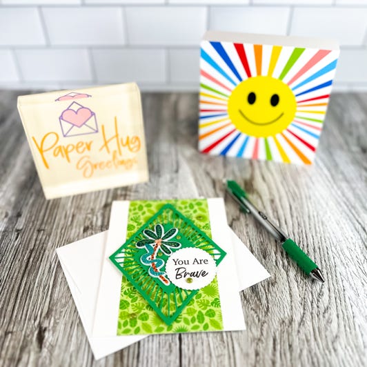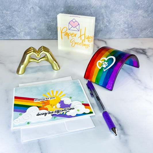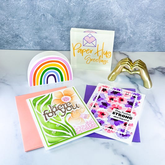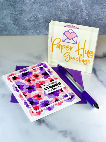 I started Paper Hug Greetings because of my passion for making handmade, unique greeting cards that will be sure to make those we love smile and feel loved, but also to help raise funds to put towards my ongoing support of patients with life threatening illnesses.
